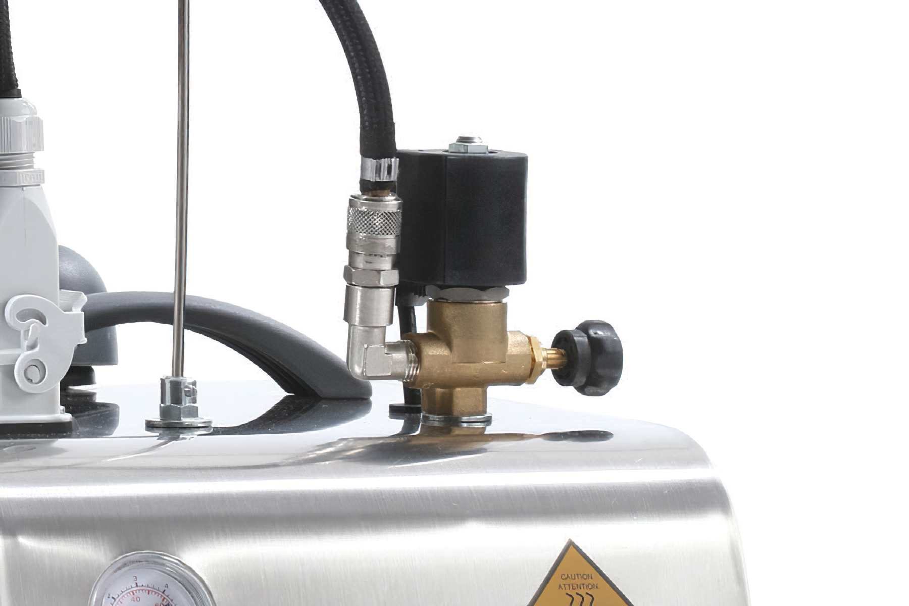 Inox visokotlačni kotliček z veliko kapaciteto uparjalne vode zagotavlja veliko količino pare tudi pri daljšem izpustu. Debelina 1,5 mm preprečuje deformacije in zagotavlja izredno dolgo življensko dobo kotlička, enostavno izpiranje vodnega kamna pa omogoča uporabo vode iz vodovodnega omrežja.