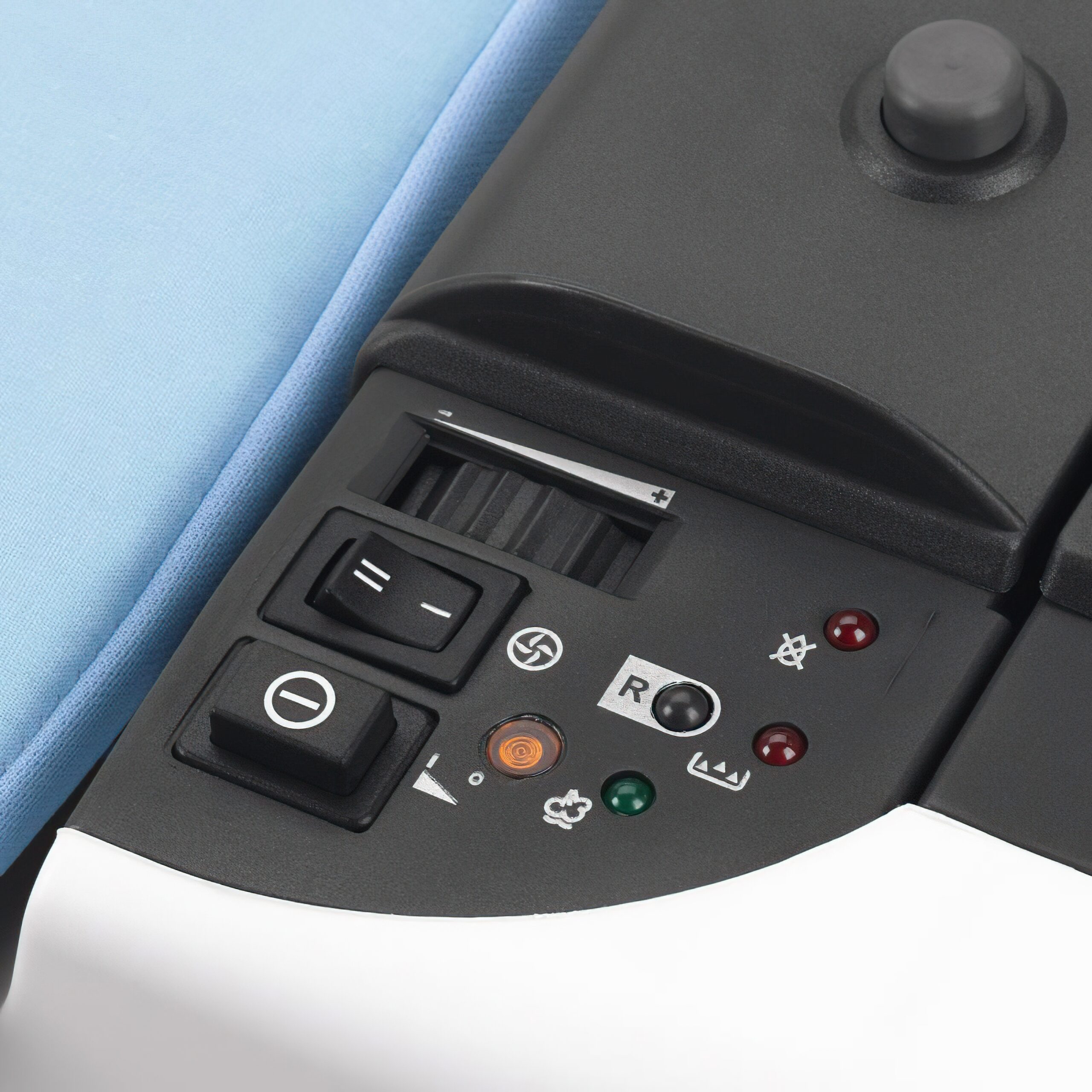 Izredno zmogljiva in nastavljiva temperatura likalne ploskve do 210°C za enostavno likanje tudi najbolj trdovratnih tkanin (lan, bombaž).